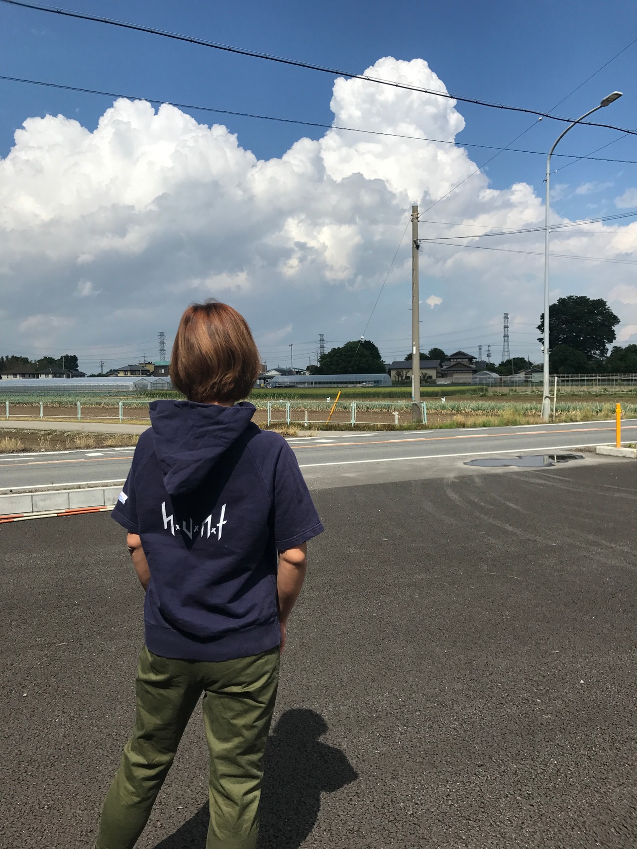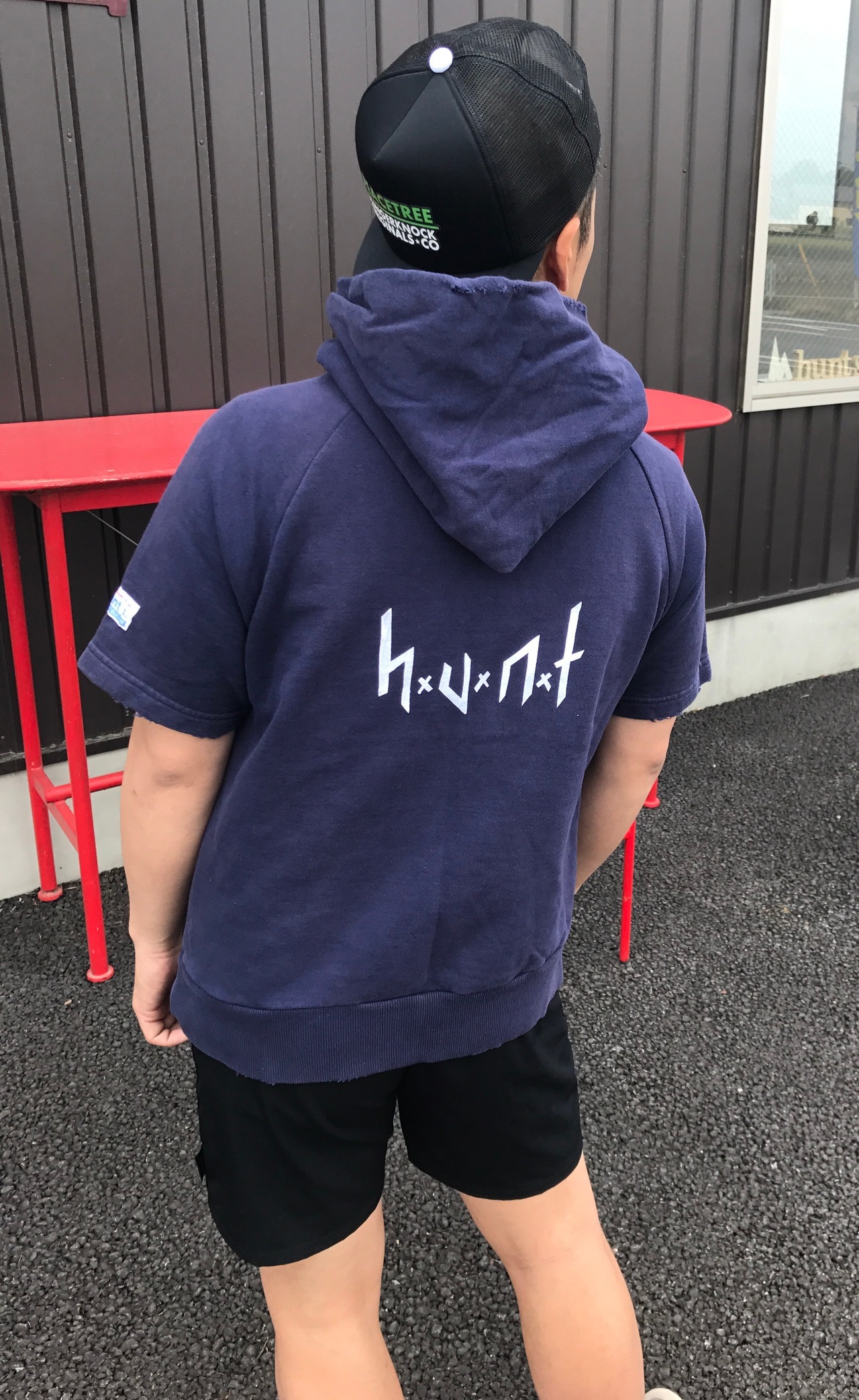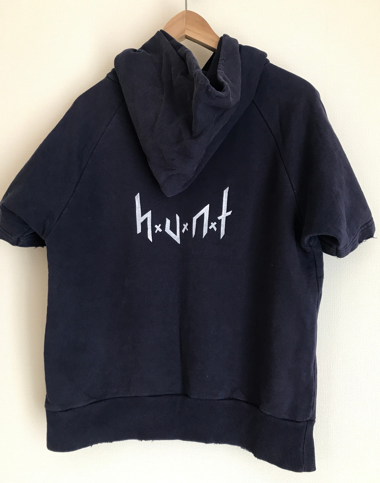 フロントとバックにはホワイトでhuntロゴを手刷りでプリント。
