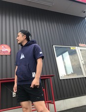 今回のone more hunt はカナダ製のcheswick製のフード付き半袖スウェットシャツをアレンジ。