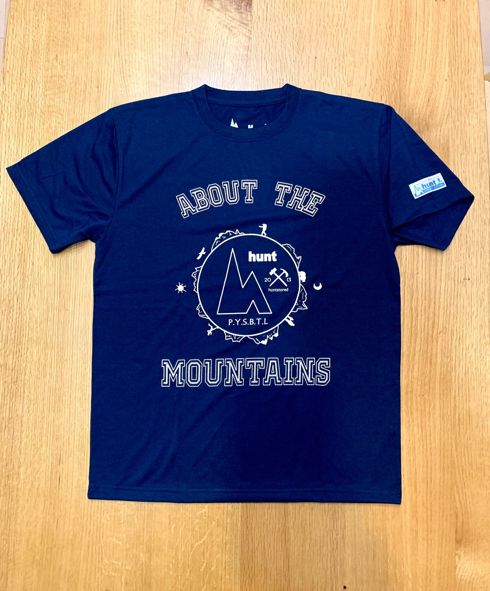 hunt オリジナルイラストに、襟と左袖にはhuntオリジナルタグ。(通称ランタグ)