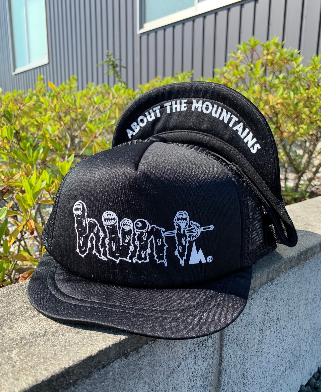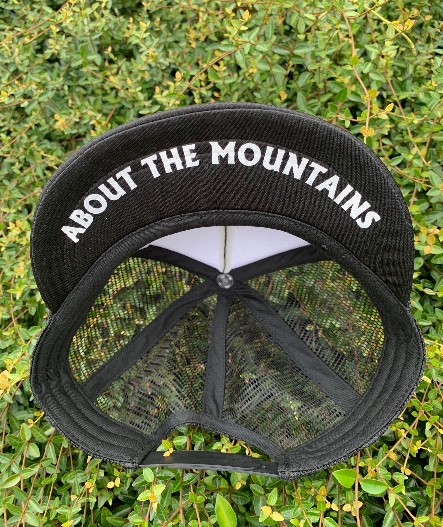 ツバ裏にはhuntstored のメインテーマでもある「ABOUT THE MOUNTAINS」。
