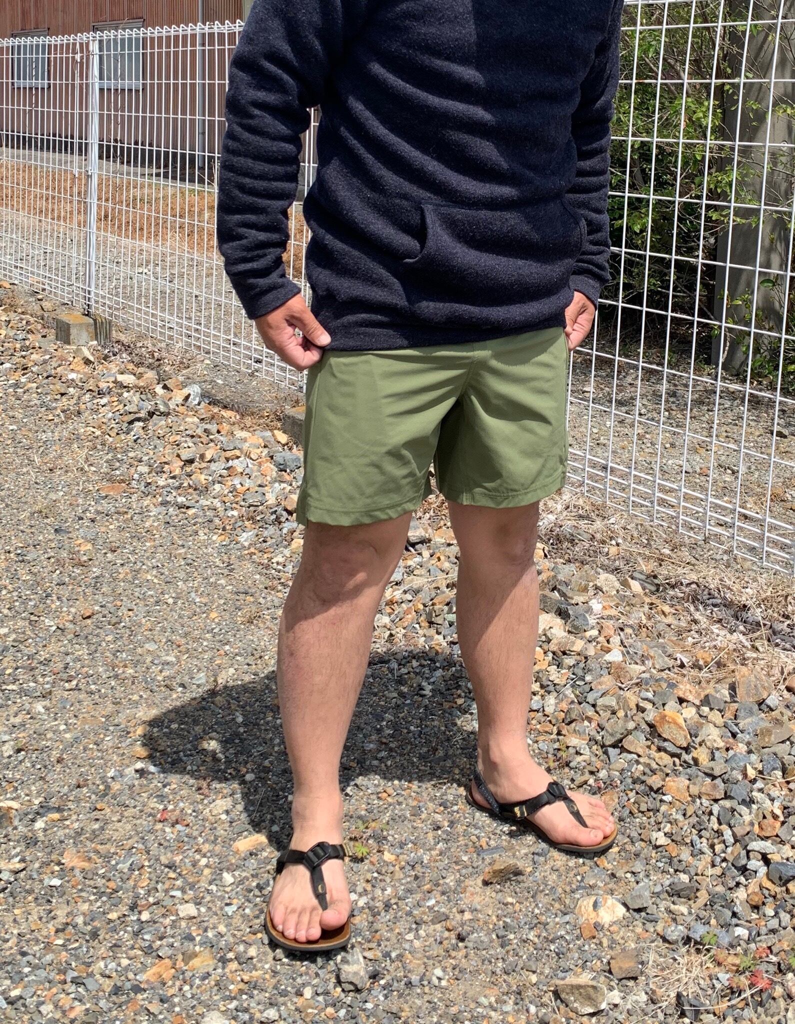 ●生地には4WAYストレッチを使用。ポリエステル+複合素材ですが高密度織なのでスレやピリングにも強い生地です。(当初はより高強度のナイロン生地と迷いましたが、この生地のメリットである履き心地・軽さ・ストレッチ・携帯性の方を優先させました。また高密度織によくある通気性の悪さからくるムレもこの生地ではそこまでありません。)